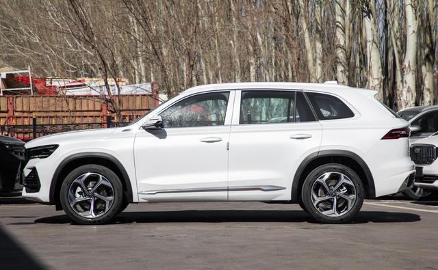 侧面线条流畅饱满,腰线从前翼子板一直延伸到尾灯,门把手是传统样式,这点我反而觉得挺好——隐藏式门把手冬天冻住的梗,北方车主都懂。车顶行李架和侧裙饰条都做了镀铬,轮毂是19英寸。车尾用了贯穿式LED尾灯,中间嵌了镀铬饰条,刹车灯点亮后的效果比较醒目,小鸭尾的设计增添了一点运动感,下包围和排气管的布局中规中矩。颜色方面,长风系列新增了"莫高蓝"配色,灵感来自敦煌壁画,这个颜色在阳光下质感确实不错,比黑白灰更有辨识度。