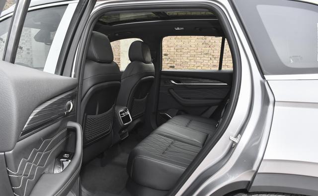 座椅材质是仿皮,填充物软硬适中,短途乘坐支撑性不错,长途的话腰部支撑还可以。主驾座椅12向电动调节,青云版带8点按摩,通风加热功能齐全,夏天开车后背不会闷汗。副驾在青云版上也有电动调节和一键放平功能,也就是所谓的"女王副驾"。